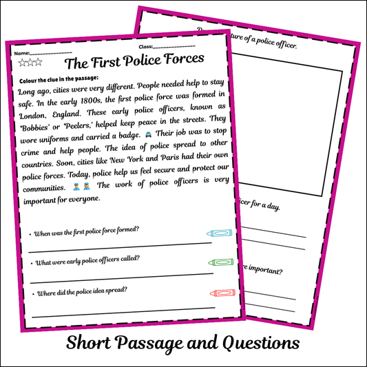 The First Police Forces | Short Reading Comprehension Creative Worksheet