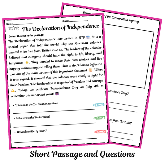The Declaration of Independence | Short Reading Comprehension Creative Worksheet