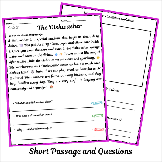 The Dishwasher | Short Reading Comprehension Creative Worksheet