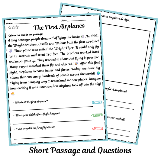 The First Airplanes | Short Reading Comprehension Creative Worksheet