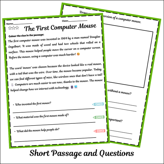 The First Computer Mouse | Short Reading Comprehension Creative Worksheet
