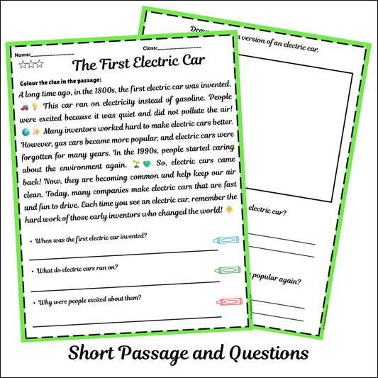 The First Electric Car | Short Reading Comprehension Creative Worksheet
