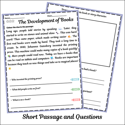 The Development of Books | Short Reading Comprehension Creative Worksheet