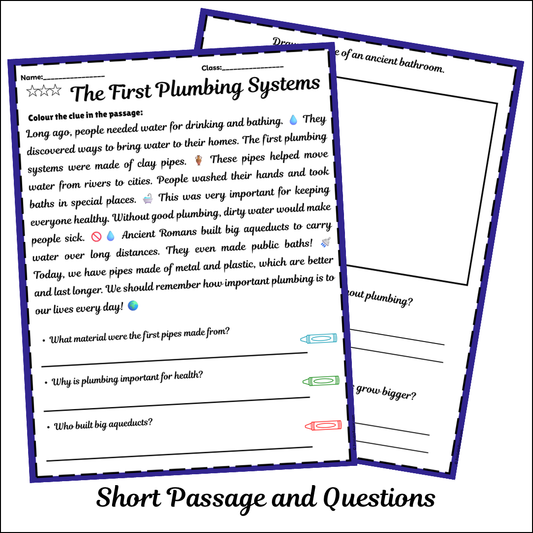 The First Plumbing Systems | Short Reading Comprehension Creative Worksheet