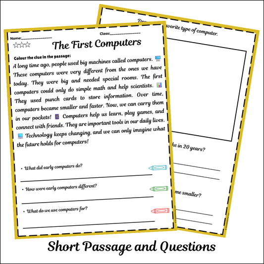 The First Computers | Short Reading Comprehension Creative Worksheet