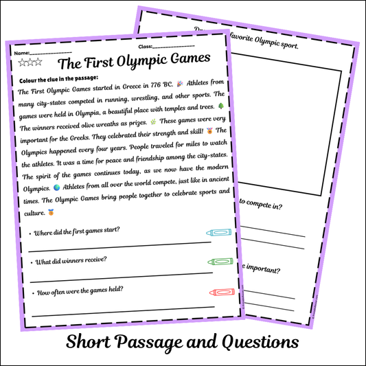 The First Olympic Games | Short Reading Comprehension Creative Worksheet
