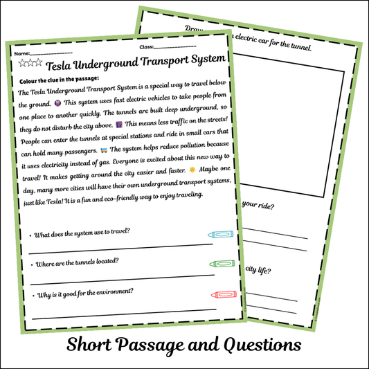 Tesla Underground Transport System | Short Reading Comprehension Creative Worksheet