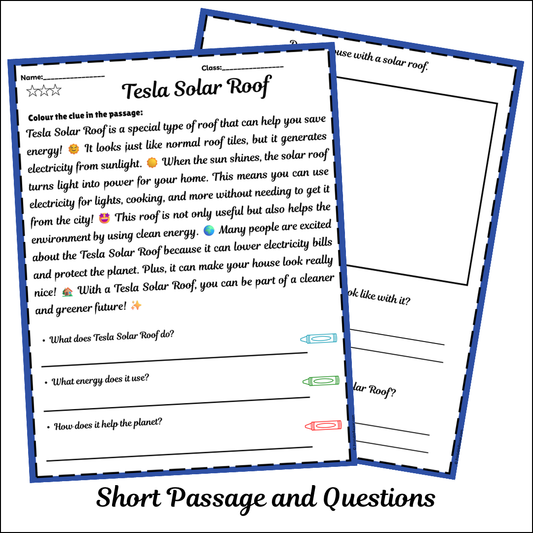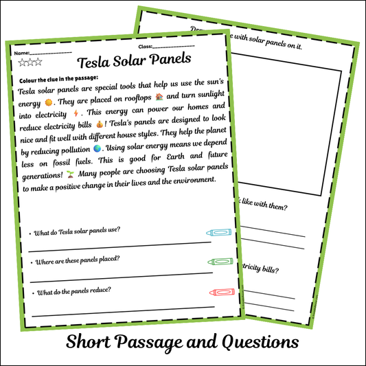 Tesla Solar Panels | Short Reading Comprehension Creative Worksheet