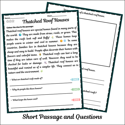 Thatched Roof Houses | Short Reading Comprehension Creative Worksheet