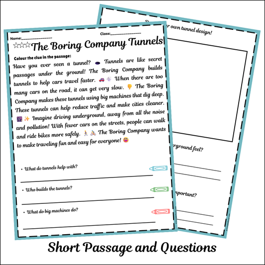 The Boring Company Tunnels | Short Reading Comprehension Creative Worksheet