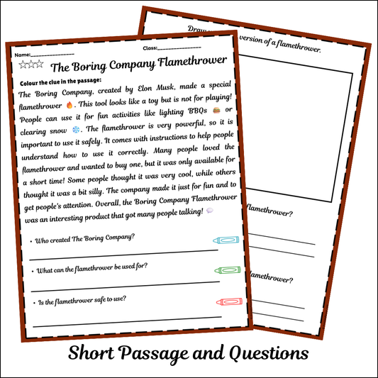 The Boring Company Flamethrower | Short Reading Comprehension Creative Worksheet