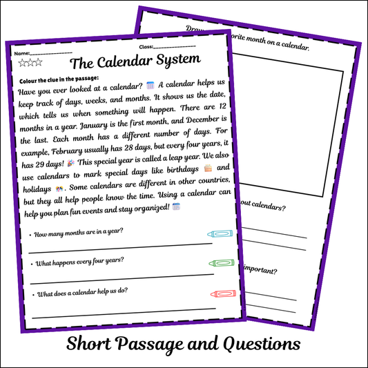 The Calendar System | Short Reading Comprehension Creative Worksheet