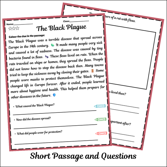 The Black Plague | Short Reading Comprehension Creative Worksheet