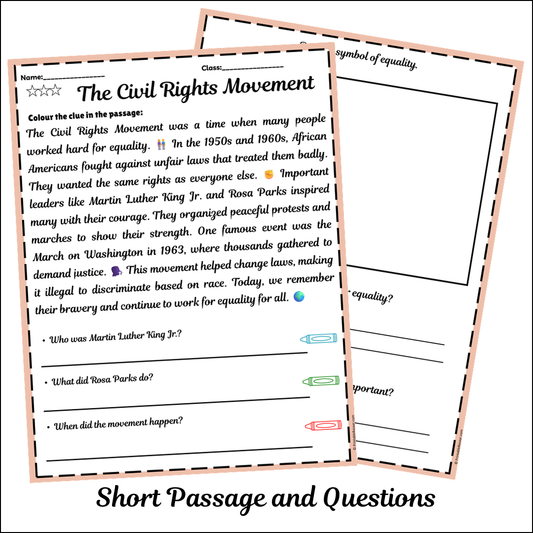 The Civil Rights Movement | Short Reading Comprehension Creative Worksheet