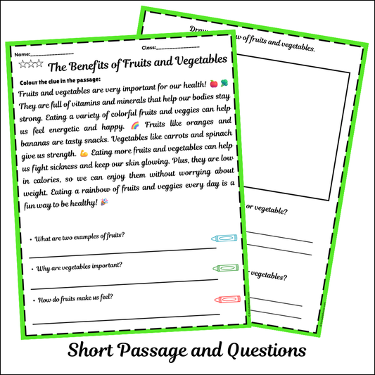 The Benefits of Fruits and Vegetables | Short Reading Comprehension Creative Worksheet