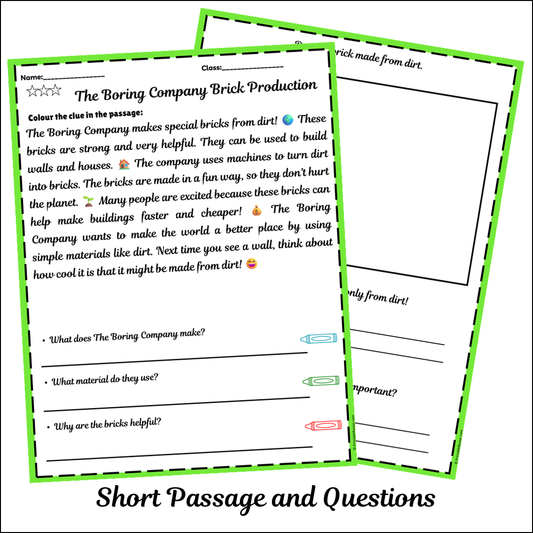 The Boring Company Brick Production | Short Reading Comprehension Creative Worksheet