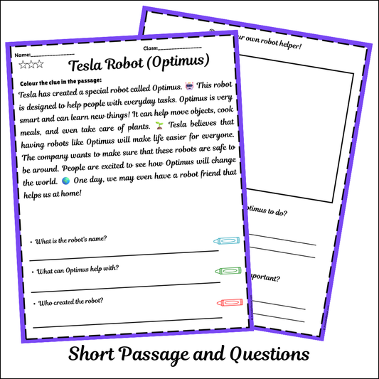 Tesla Robot (Optimus) | Short Reading Comprehension Creative Worksheet
