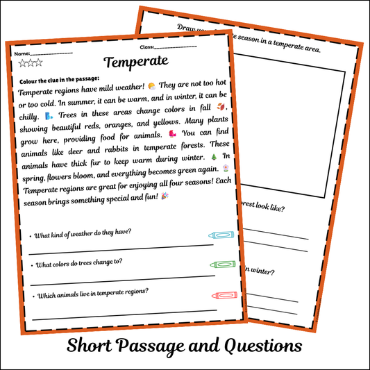 Temperate | Short Reading Comprehension Creative Worksheet