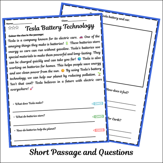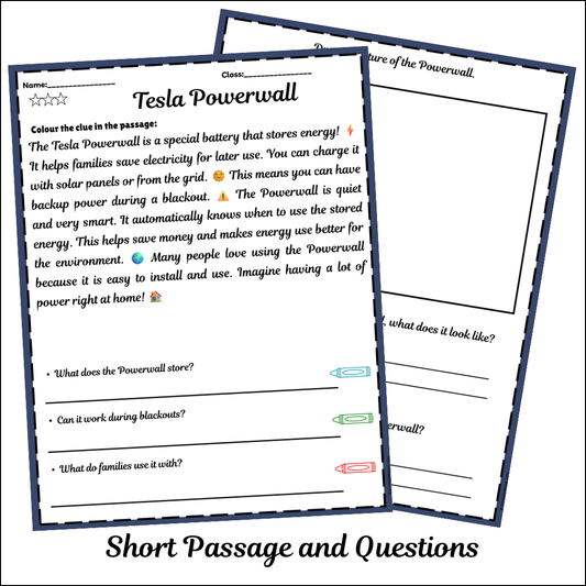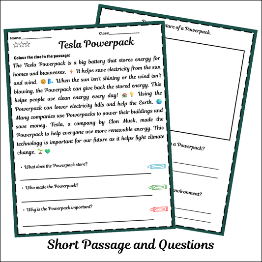 Tesla Powerpack | Short Reading Comprehension Creative Worksheet