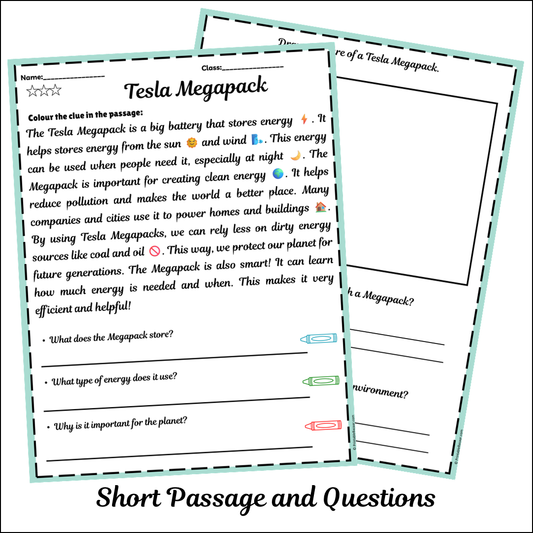 Tesla Megapack | Short Reading Comprehension Creative Worksheet