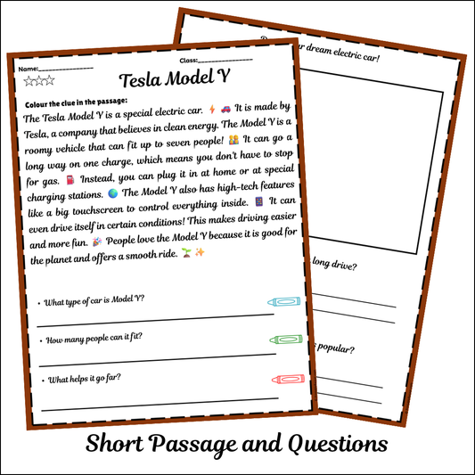 Tesla Model Y | Short Reading Comprehension Creative Worksheet