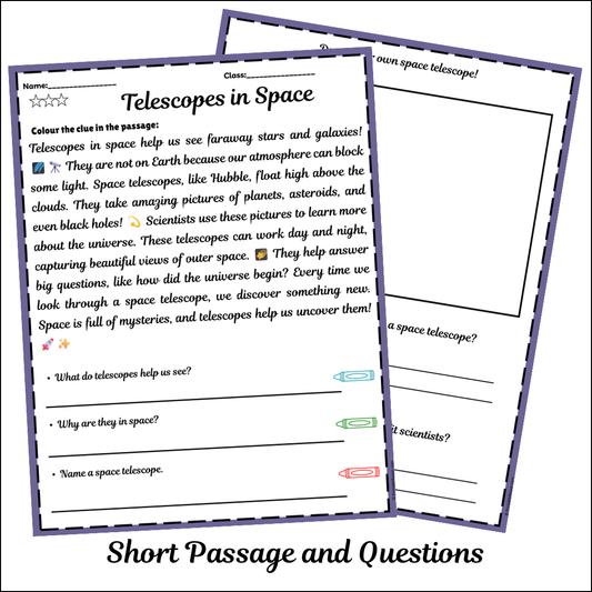 Telescopes in Space | Short Reading Comprehension Creative Worksheet