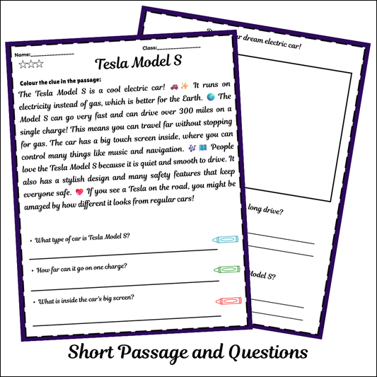 Tesla Model S | Short Reading Comprehension Creative Worksheet