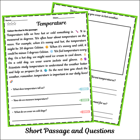 Temperature | Short Reading Comprehension Creative Worksheet