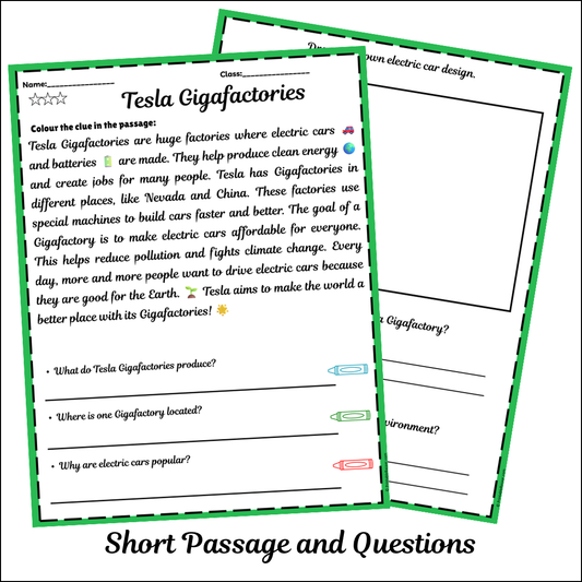 Tesla Gigafactories | Short Reading Comprehension Creative Worksheet