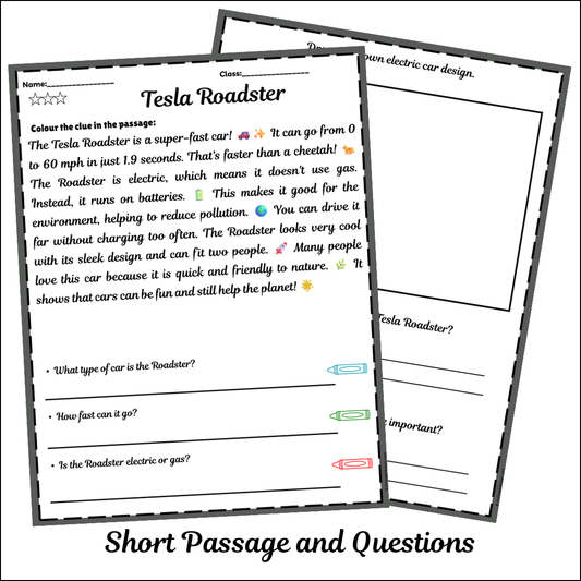 Tesla Roadster | Short Reading Comprehension Creative Worksheet