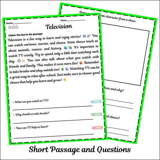 Television | Short Reading Comprehension Creative Worksheet