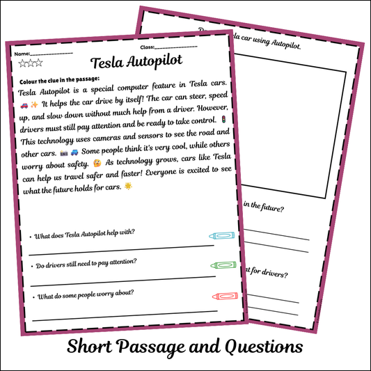 Tesla Autopilot | Short Reading Comprehension Creative Worksheet
