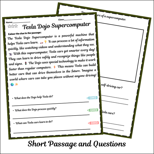 Tesla Dojo Supercomputer | Short Reading Comprehension Creative Worksheet
