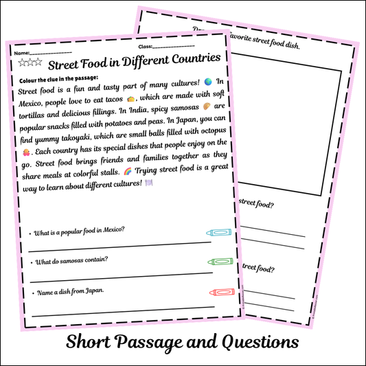 Street Food in Different Countries | Short Reading Comprehension Creative Worksheet
