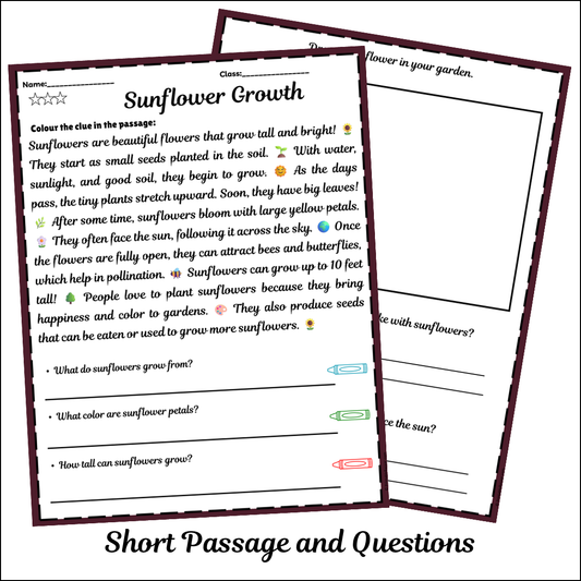 Sunflower Growth | Short Reading Comprehension Creative Worksheet