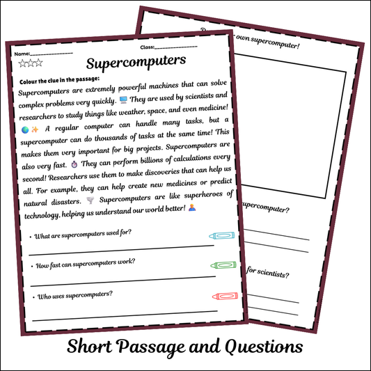 Supercomputers | Short Reading Comprehension Creative Worksheet