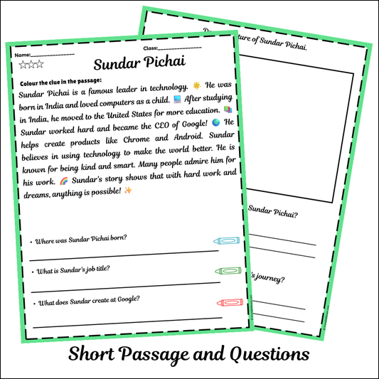 Sundar Pichai | Short Reading Comprehension Creative Worksheet