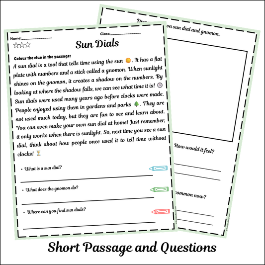 Sun Dials | Short Reading Comprehension Creative Worksheet