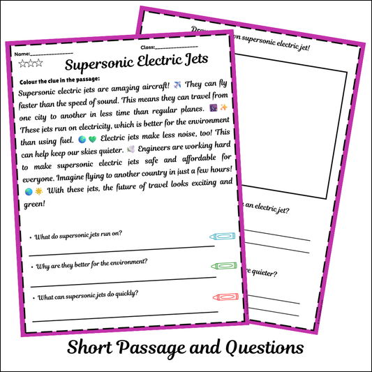 Supersonic Electric Jets | Short Reading Comprehension Creative Worksheet