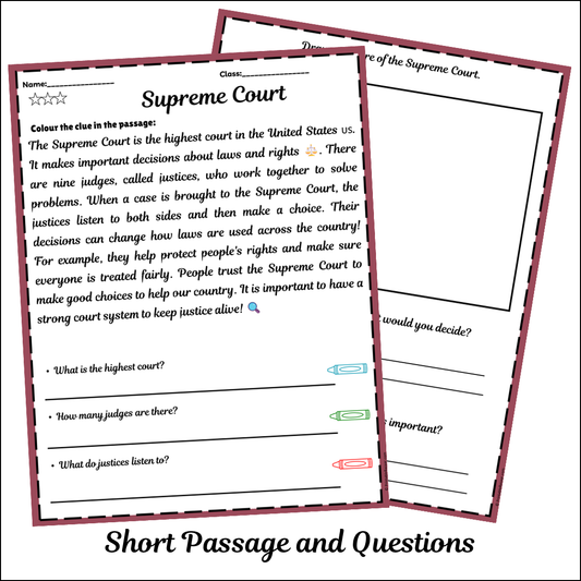 Supreme Court | Short Reading Comprehension Creative Worksheet