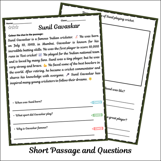 Sunil Gavaskar | Short Reading Comprehension Creative Worksheet