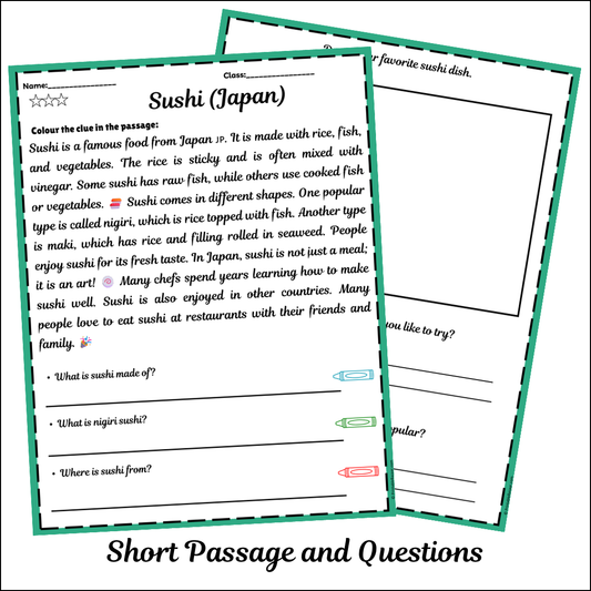 Sushi (Japan) | Short Reading Comprehension Creative Worksheet