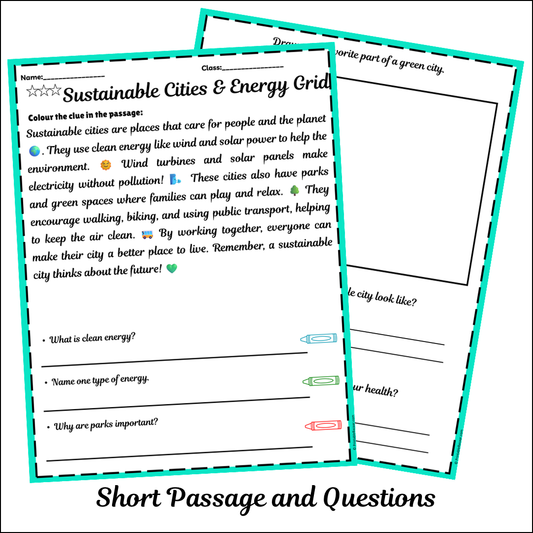 Sustainable Cities & Energy Grid | Short Reading Comprehension Creative Worksheet