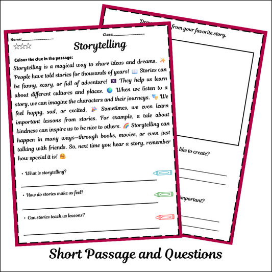 Storytelling | Short Reading Comprehension Creative Worksheet