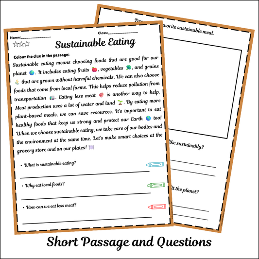 Sustainable Eating | Short Reading Comprehension Creative Worksheet