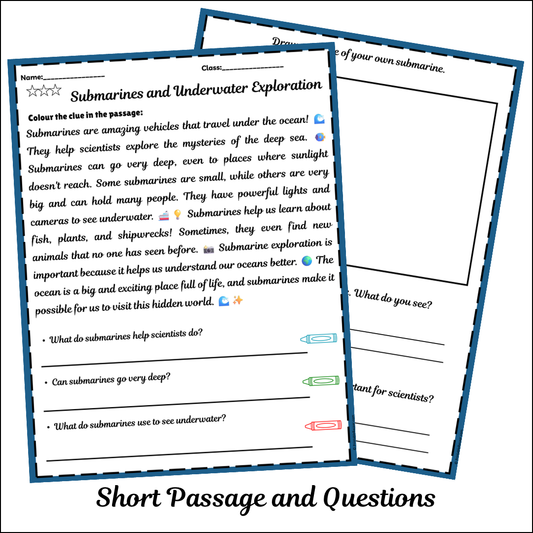 Submarines and Underwater Exploration | Short Reading Comprehension Creative Worksheet