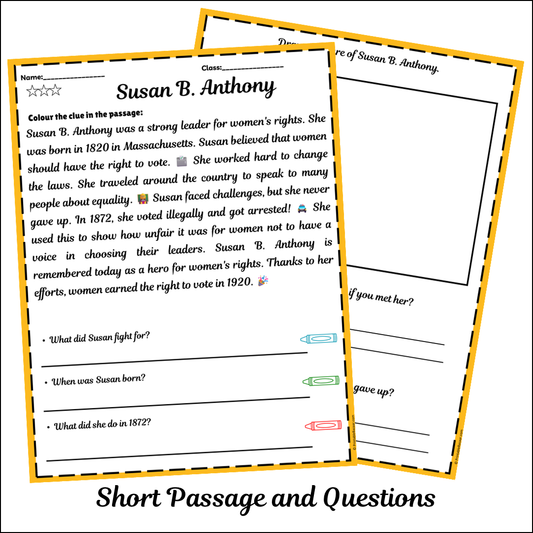 Susan B. Anthony | Short Reading Comprehension Creative Worksheet