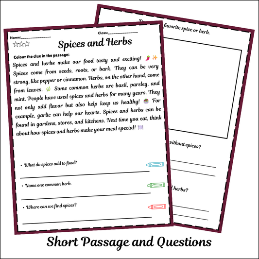 Spices and Herbs | Short Reading Comprehension Creative Worksheet