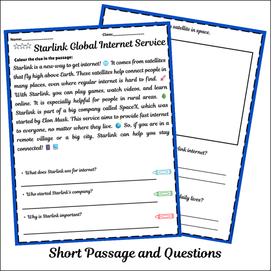 Starlink Global Internet Service | Short Reading Comprehension Creative Worksheet