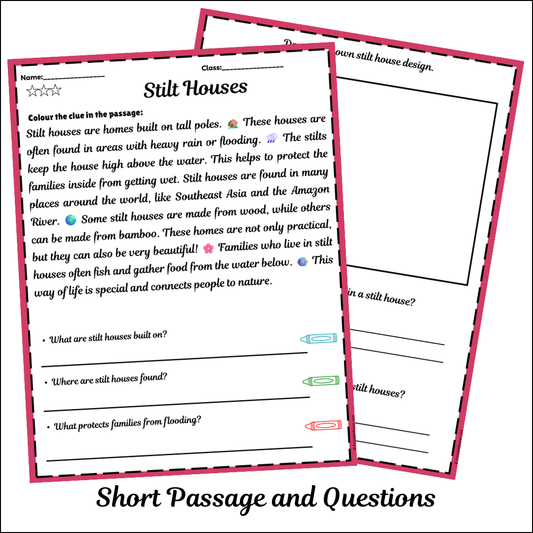 Stilt Houses | Short Reading Comprehension Creative Worksheet